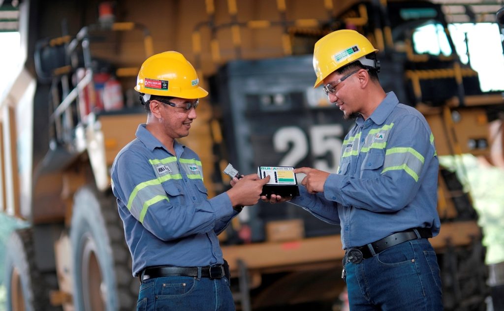 Ilustrasi pekerja BUMA tengah meninjau operasional pertambangan di salah satu situs operasionalnya. (Dok. BUMA).