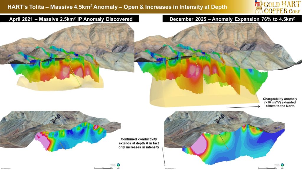 Gold Hart Copper (TSXV: HART) telah merilis rincian kegiatan eksplorasi baru-baru ini di dua asetnya di Chili, termasuk hasil survei geokimia di kompleks emas-tembaga-perak Nessa dan informasi terkini mengenai pengeboran yang sedang berlangsung di proyek emas-tembaga-molibdenum-perak andalan Tolita di Distrik Vicuña. Pembaruan tersebut dilaporkan oleh Bapak Isaac Maresky dalam keterbukaan tertanggal 2 Februari 2026.