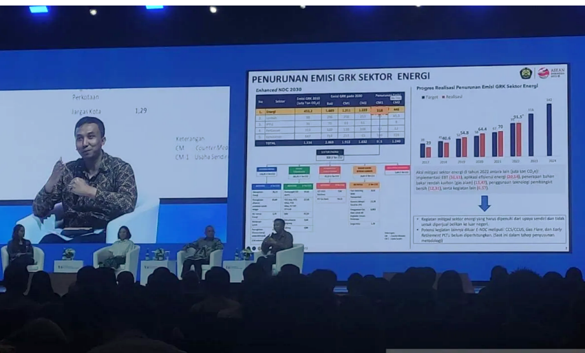 Direktur Konservasi Energi, EBTKE, Kementerian ESDM, Gigih Udi Atmo, saat tampil sebagai pembicara dalam salah satu sesi talkshow di Indonesia Knowledge Forum 2023 bertema “Eco-Creation: Empower Sustainability through Partnerships and Digitalization,” yang diselenggarakan BCA, Selasa (10/10).