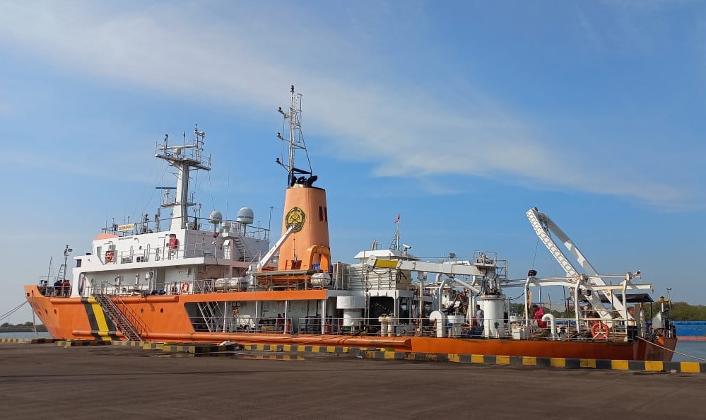 Kapal Geomarin III saat sandar di Dermaga Muara Jati, Pelabuhan Cirebon, Jawa Barat. (Badan Geologi, Kementerian ESDM)