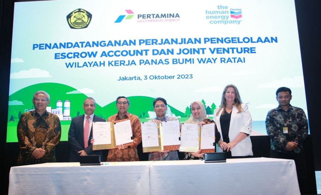 Jakarta, – Menyusul penetapan pemenang lelang wilayah kerja panas bumi (WKP) di daerah Way Ratai, Lampung, konsorsium Chevron New Energies melalui PT Jasa Daya Chevron (Chevron) dan PT Pertamina Geothermal Energy Tbk (PGE) menandatangani beberapa perjanjian, Selasa (3/10).
