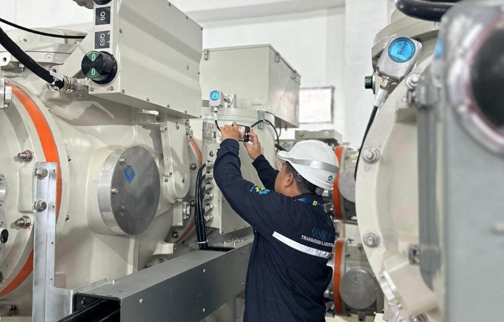 Petugas PLN tengah mengecek kesiapan Gas Insulated Switchgear (GIS) di IKN sebelum dilakukan pemberian tegangan perdana.
