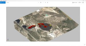 STEP 4: In Surpac, open any additional data to supplement the animations like surfaces, solids, or drill-holes. In my example, I am using an aerial photo draped onto the topography surface, and two pit designs.