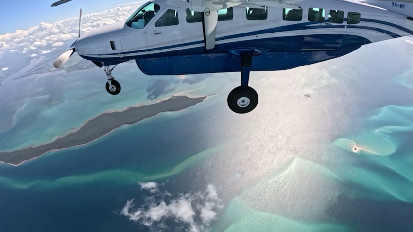 Setelah lepas landas dari Brisbane tepat setelah fajar, pesawat baling-baling kecil kami melintasi bermil-mil garis pantai Queensland sebelum menuju ke utara melintasi perairan Laut Koral yang sebening kristal –— mengungkap keindahan sistem terumbu karang yang luas di bawah permukaannya.